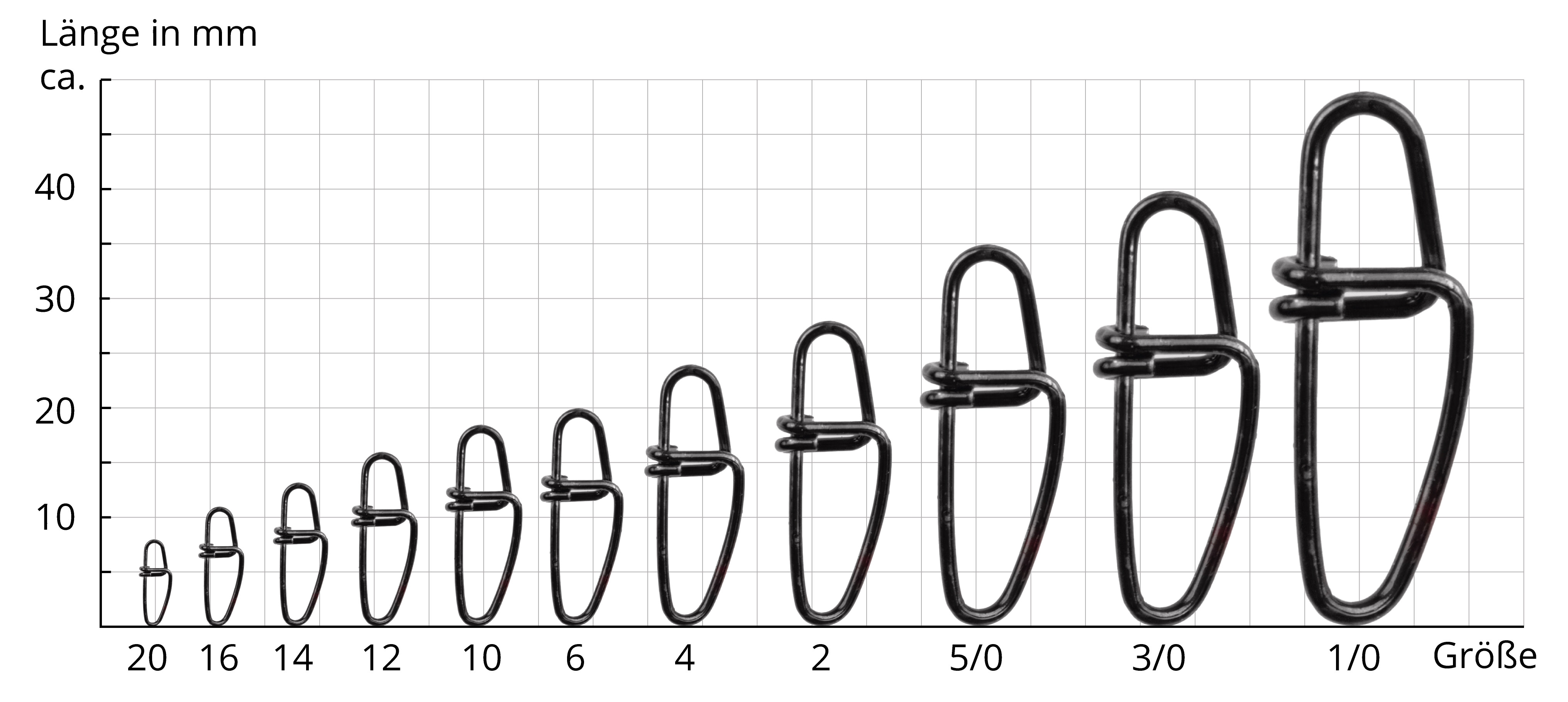 Wählen Sie passend zum Zielfisch, die entsprechende Größe und Tragkraft des Wirbels aus. So benötigen Sie, bei größeren Fischen auch mehr Tragkraft und beim Meeresangeln widerstandsfähige Einhängewirbel aus Edelstahl. Die Angabe der Größe bei Wirbel-Karabinern bedeutet für Angler, dass die Größe 2 größer ist, also eine höhere Tragkraft besitzt, als die Größe 4 und so weiter.