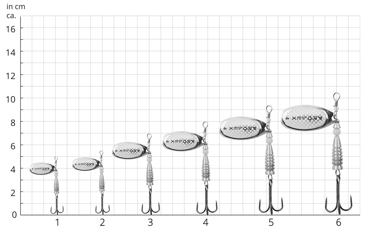 Die French Style Spinner-Blätter unterscheiden sich in 8 Farben x 6 Größen (4-22 g).